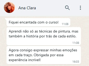 Caso, por qualquer motivo, você não esteja totalmente satisfeito, basta solicitar um reembolso completo dentro desse período. Comece sua jornada artística com tranquilidade, sabendo que seu aprendizado e desenvolvimento estão garantidos, sem riscos!
